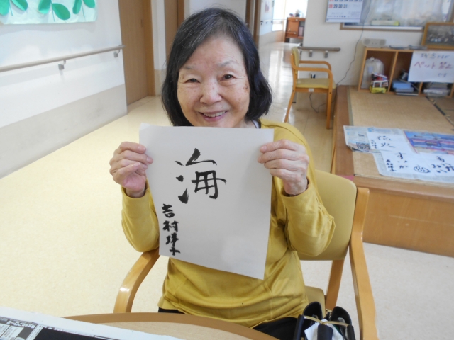 夏休みの宿題!? お習字の時間