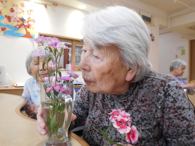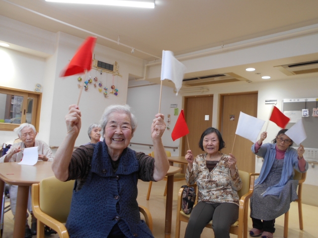 今日のレクリエーション活動は紅白旗揚げで決まり!!