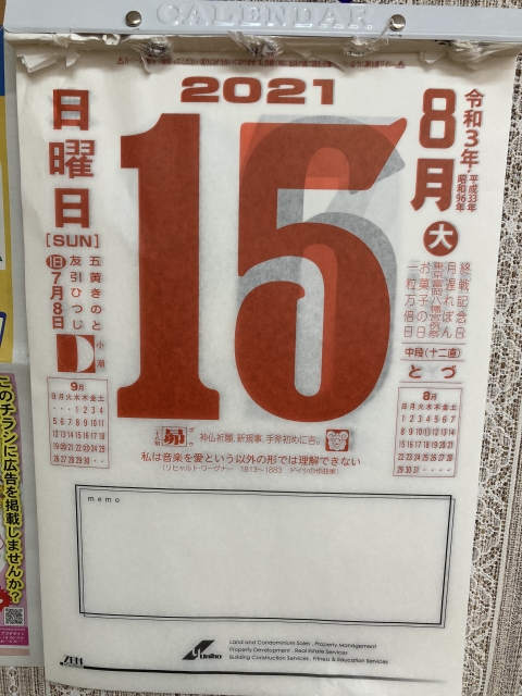 2021年8月15日 戦没者を追悼し平和を祈念する日