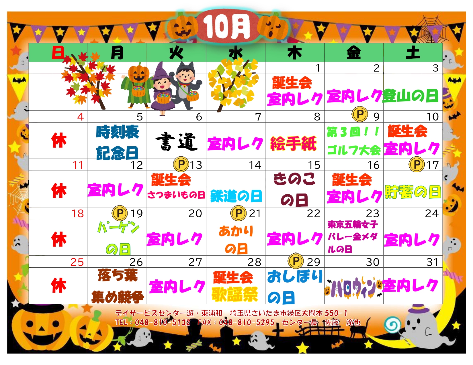 ☆10月のレクリエーションカレンダー☆