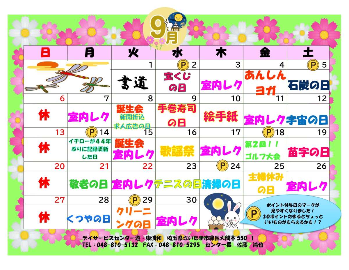 9月のレクリエーションカレンダー