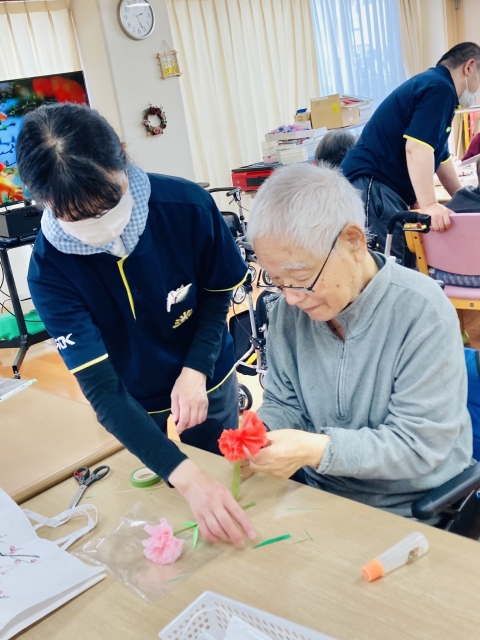 今日は、イベントのカーネーション作りです。