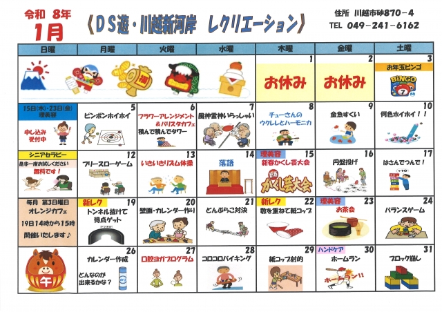 2026年1月のレクリエーションカレンダー♡