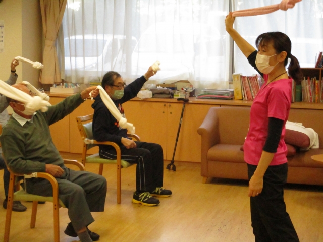 今日はAKタオル体操の高橋インストラクターが来所され一緒に体操しました。( ^)o(^ )