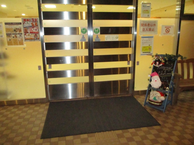 12月になりました!1階入口でサンタさんが顔をだしていました!