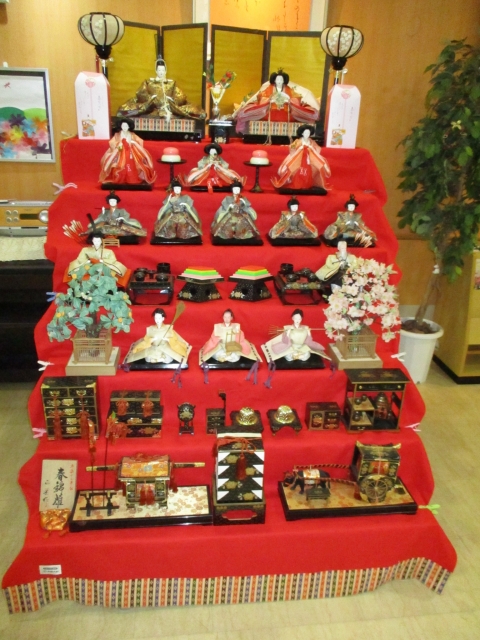 お雛様の前でパチリ!