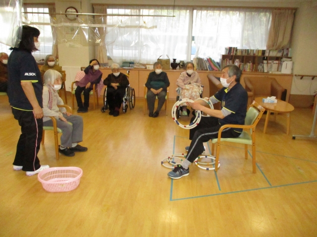 今日の運動レクレーションは『人間輪投げ』です!