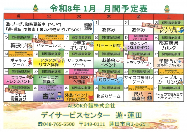 【月間予定表】お正月スタートと共にいろいろとやります!