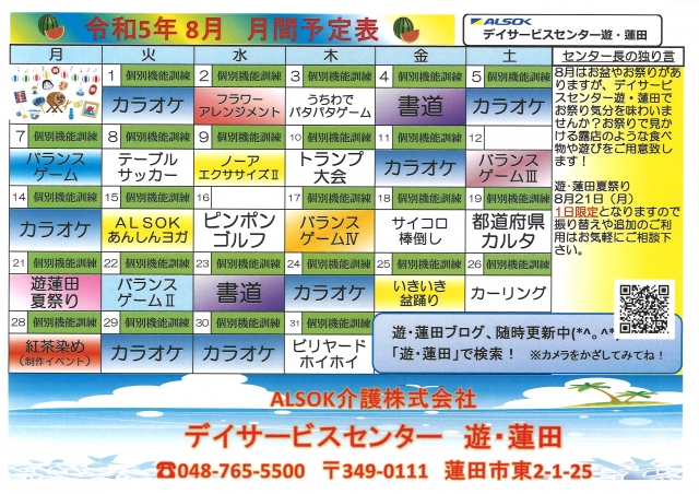 8月予定表になりまーーす!夏まつり開催しますよー