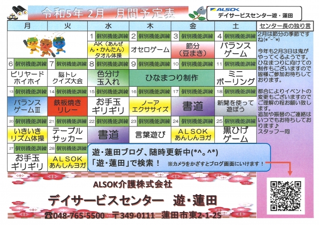 2月の予定表です♪