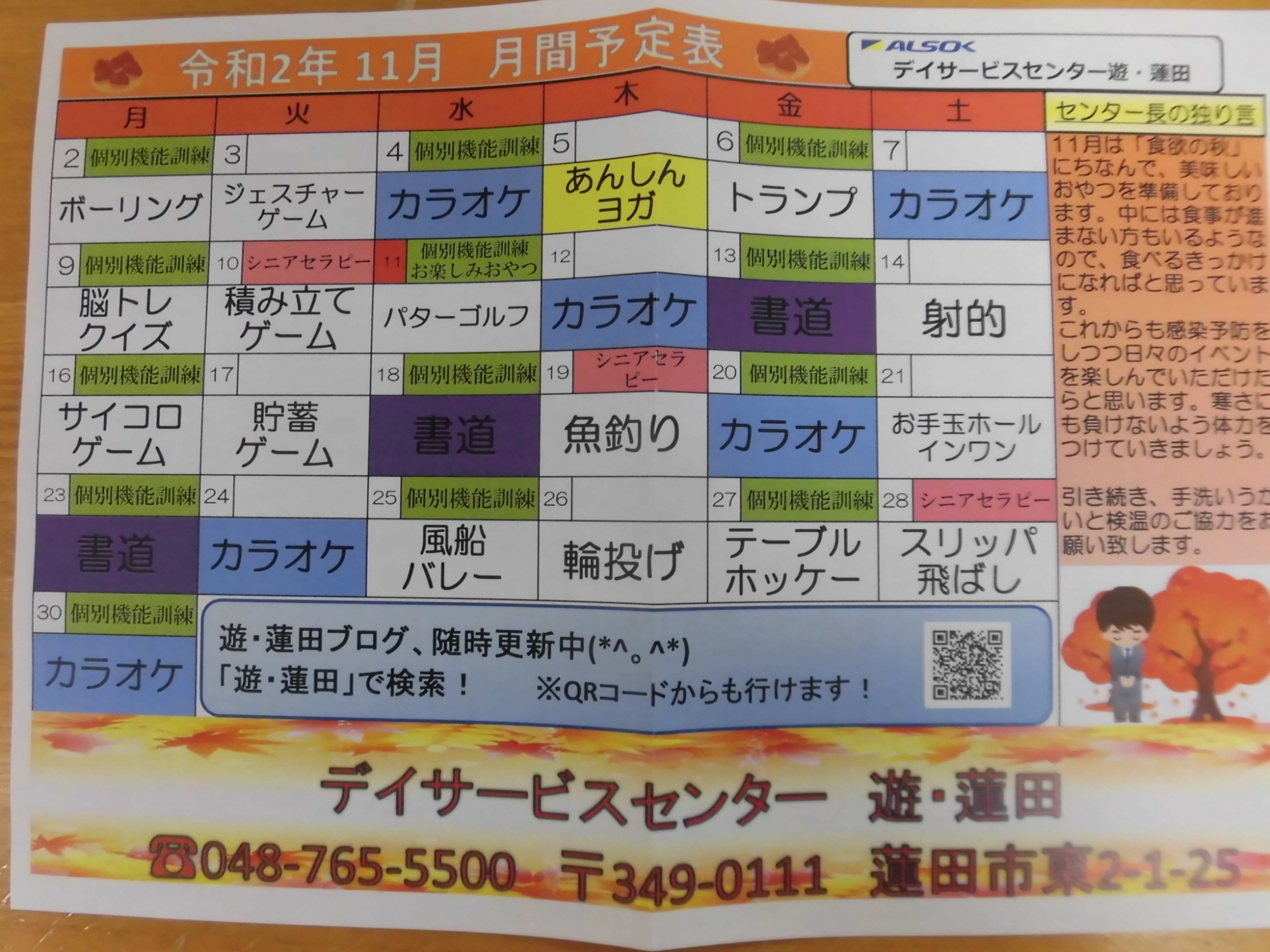 11月の予定表です