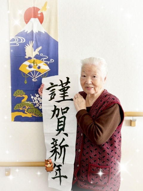 グループホームみんなの家大宮三橋 今年の気持ちを文字にのせて~心あたたまる書初めの様子~