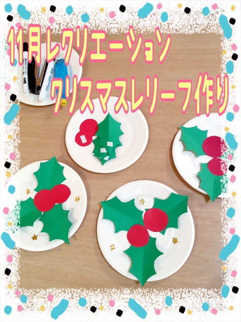 グループホーム みんなの家・大宮三橋 3階11月レクリエーション『ヒイラギのクリスマスレリーフ』