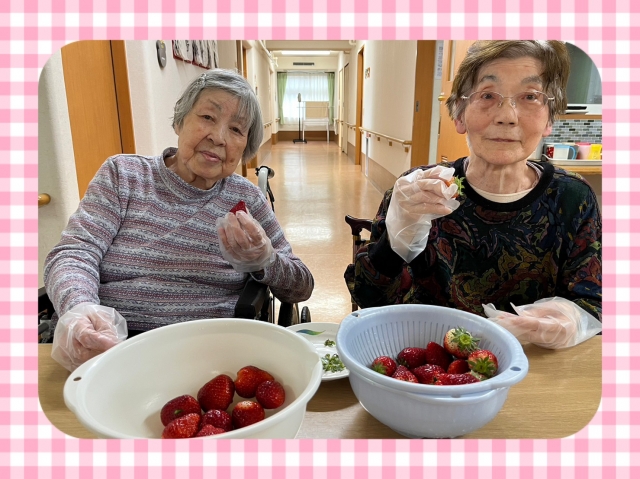 グループホームみんなの家大宮三橋 4月2Fいちご大福作りました♡