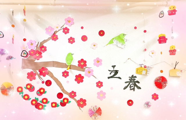 グループホームみんなの家大宮三橋 ホーホケキョ!2階2月壁飾り!