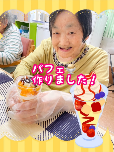グループホームみんなの家大宮三橋 思い思いのフルーツパフェを!2Fおやつレク♡