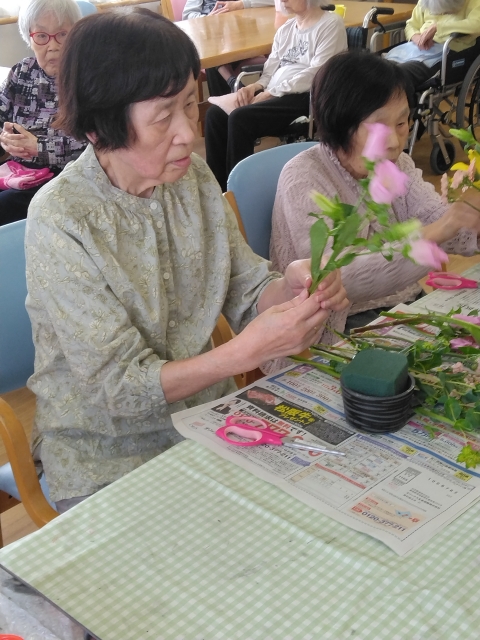 介護付き有料老人ホーム「アミカの郷流山」5月フラワーアレンジメント