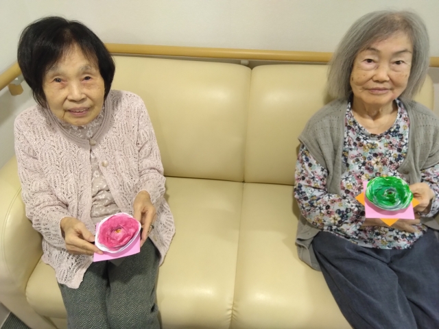 介護付き有料老人ホーム「アミカの郷流山」花飾り創作レク♪