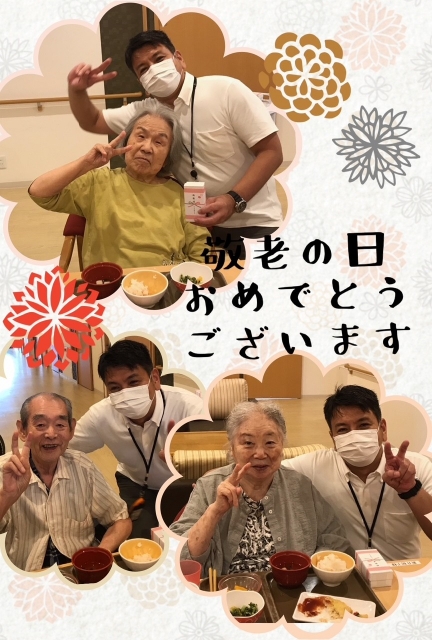 【アミカの郷ちとせ】敬老日に感謝の気持ちを込めて紅白饅頭を贈りました( *^-^)ρ(^0^* )