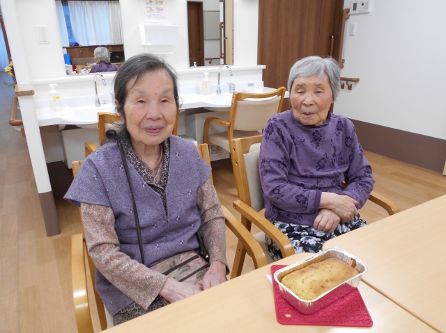 差し入れの干し柿をパウンドケーキで、ああ美味しい!。