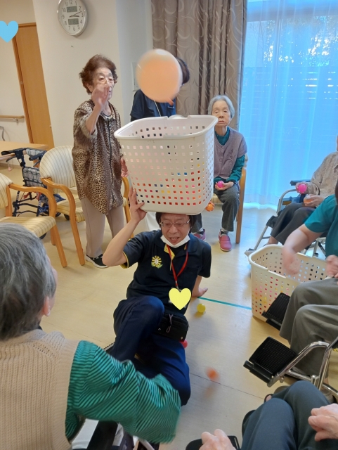 ご好評につき、再び風船バレーと玉入れ開催です♪