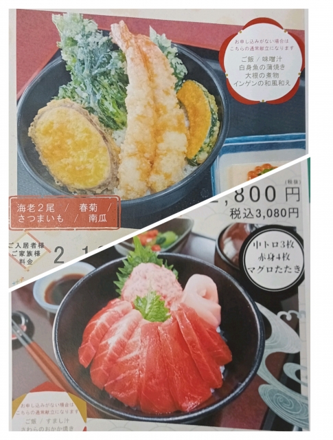 3月の特別食 『天丼』・『マグロづくし丼』