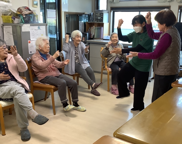 リモート体操1F 笑顔あり!笑いあり!元気に参加致しました!