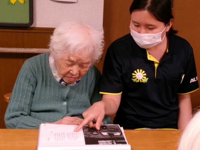 夕方~歌の時間。皆さん歌集を見て歌声たからか~(*´σー`)エヘヘ