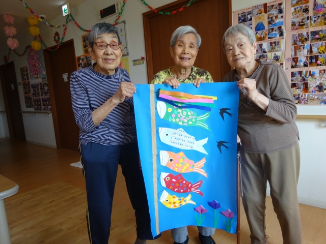 『こいのぼりの壁面作成』 ~グループホームみんなの家・横浜今宿の介護ブログ~