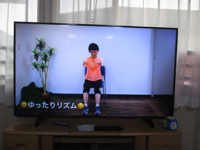 大きなテレビで体操
