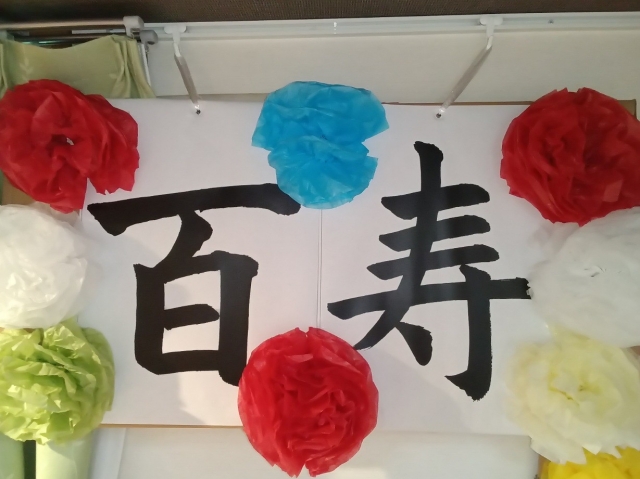 グループホームみんなの家・中野鷺宮で8月のお誕生会で「百寿」のお祝い