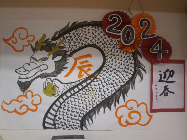 三が日の二日目はもちろん、書き初めです。「書けない」「大丈夫」「ダメ」「じゃぁ、一緒に」押し問答の末に皆さんに書いていただきました。