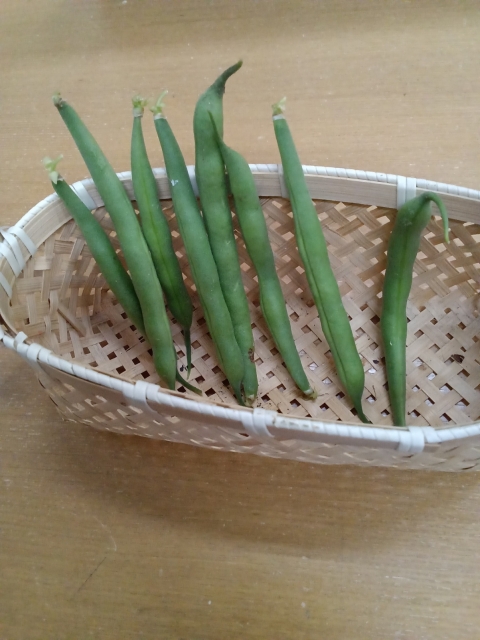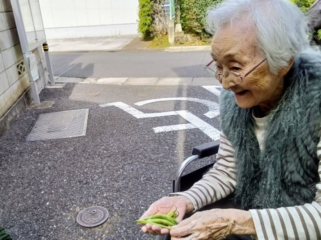 グループホームみんなの家・中野鷺宮で「インゲン」の収穫