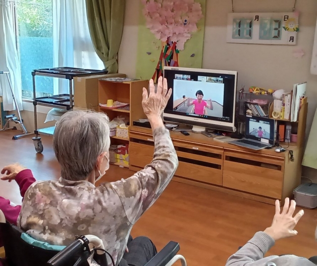 グループホームみんなの家・中野鷺宮でリモートの体操に参加