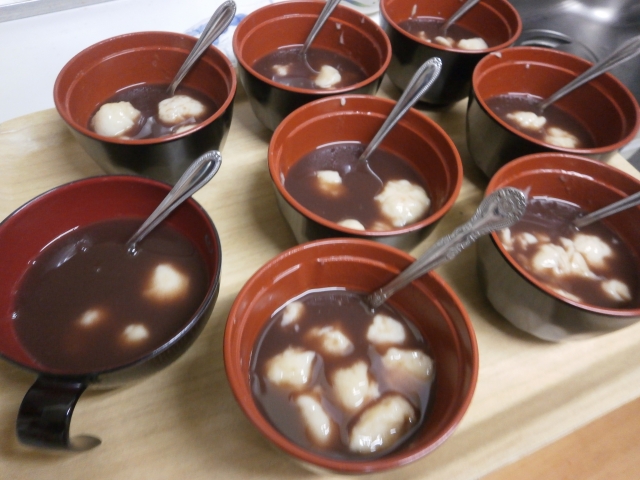 元日のおやつはお汁粉。甘~いものが大好きな皆様には大変好評でした。①