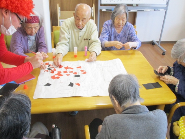 2階、鬼の貼り絵の様子☆