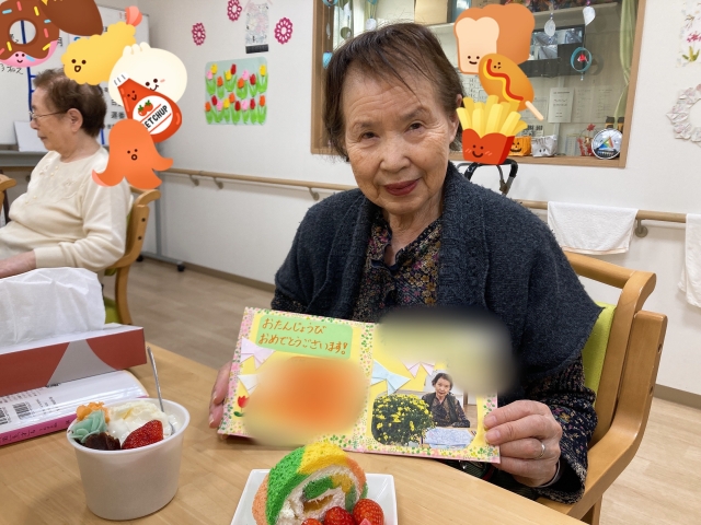 『ご入居者様の皆様でケーキを楽しみました』