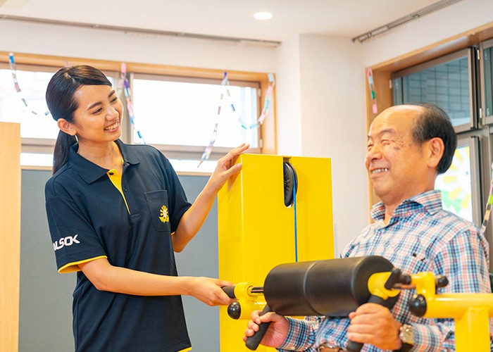 ALSOKオリジナルの「ALSOKあんしん体操」「ALSOKあんしんヨガ」、ALSOKの介護オリジナルの「NõA(ノーア)エクササイズ」「いきいきリズム体操」を積極的に実施し、ご利用者様の「元気」をサポートしています。