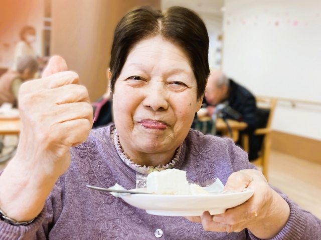 毎月誕生日会では、誕生日の方のご希望でうなぎや、ハンバーグ、お寿司などお好きなお食事をご用意してお祝いしています。もちろんケーキも用意いたします!甘いものは別腹ですものね。