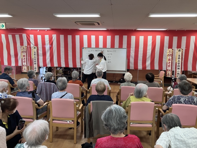 ご利用者様が笑いながら、楽しくお過しいただけるよう、オリジナルのイベントやレクリエーションに力を入れているデイサービスです。機能訓練も充実しており、柔道整復師の資格を持つ機能訓練指導員2名が毎日実施します。また、ご利用者様のフェイスケア・ネイルケア等を行う「ビューティーの日」は女性のお客様に大好評です。是非一度、見学にお越し下さい。