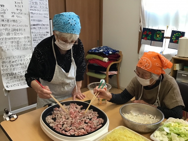 例えば、皆様で昼食作りの準備や片付けをするなど、お互いにできることを協力し、認め合い、ご利用者様はいろいろな作業を通して『まだまだできる自分』を発見しています。