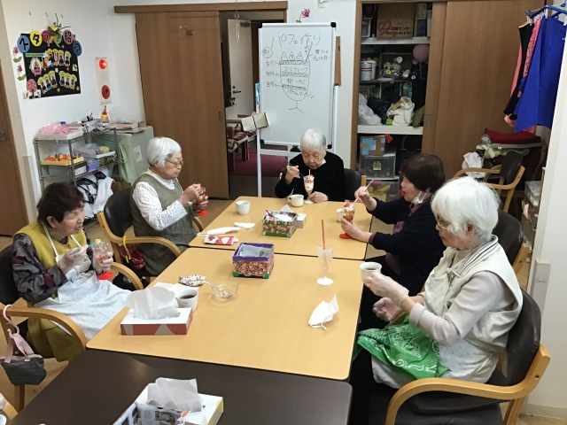 作品作り、頭の体操、機能訓練体操なども行っていますので、あっという間の一日。デイサービスでの時間は、笑いとおしゃべりとがあふれる、和やかなひとときです。