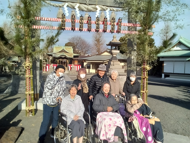 近所には公園や神社など多数あり、天気の良い日はケアスタッフと一緒に散歩に出掛けます。
