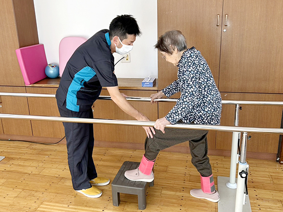 足を上げて股関節を曲げることで、股関節周囲のインナーマッスルを強化し、転びにくい身体を作っていきます。