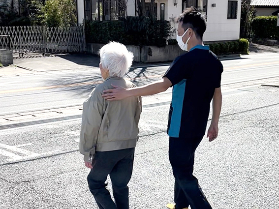 屋外を歩くことで不整地歩行の練習ができ、さらに四季を感じることで覚醒の向上や認知面低下の予防にも繋がります。