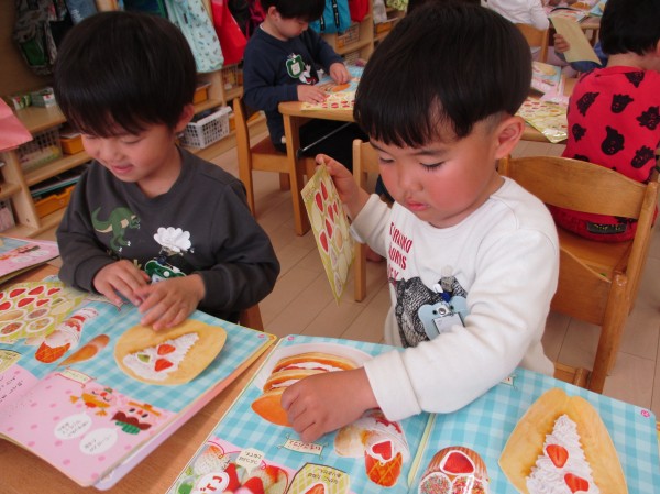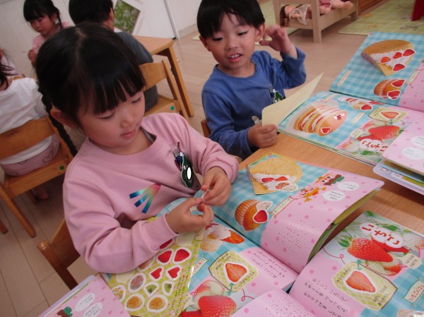 実はこのシールはいちごの甘いにおいがするので、「いちごのにおいがするね♡」と大盛り上がり。