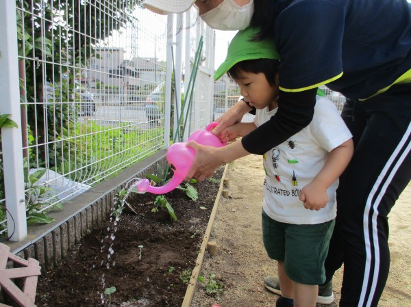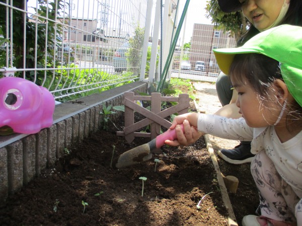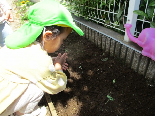 こどもの家保育園・志木中宗岡 おくらを育てています。(^^♪ らっこ組(2歳児)
