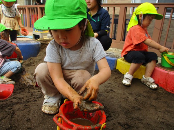 そんな中、今日は砂場で泥んこ遊びをしました♪