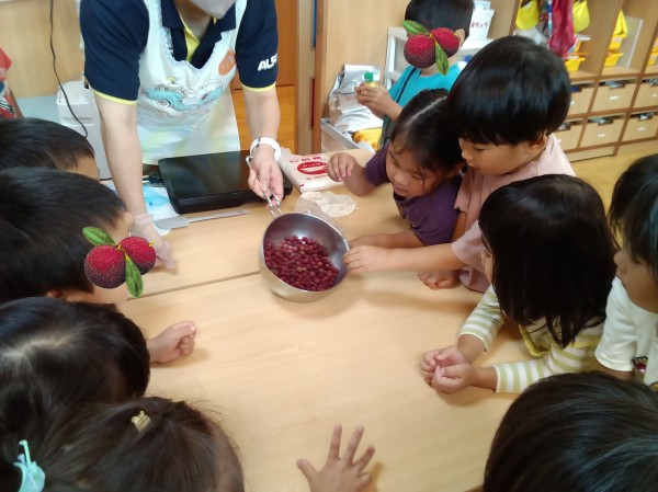 こんにちは‼たんぽぽ海神町南保育園です。いつも保育園ブログをご覧頂きありがとうございます。今回はぱんだ組が公園で見つけ、拾い集めた「やまもも」を使って自然遊びと食育を行った様子を掲載いたします。