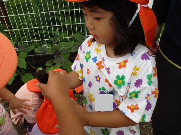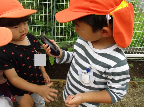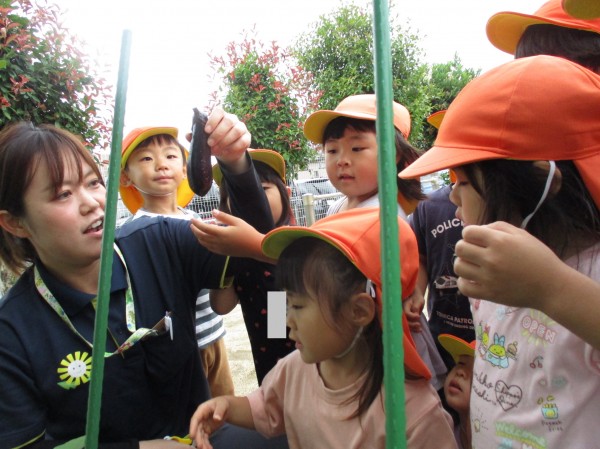 こどもの家・志木中宗岡 ぺんぎん組(3歳児クラス) なすが収穫できたよ♪